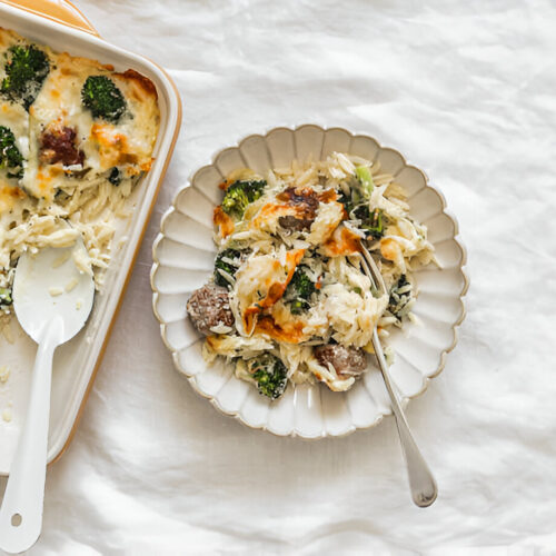 This baked dish is a delight for cheese lovers, combining the creaminess of cheese with the goodness of orzo for a comforting casserole.